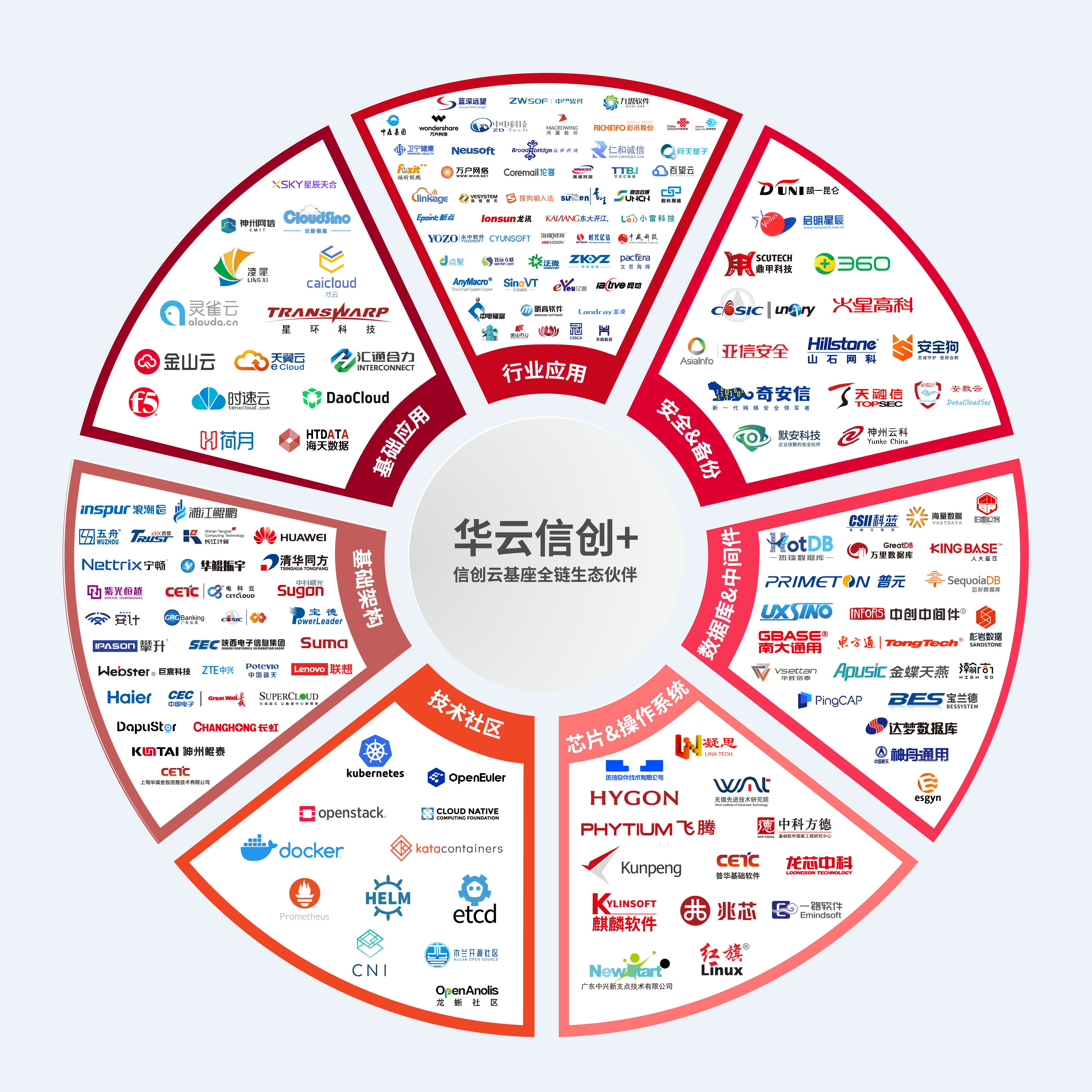 华云数据为我国的信息技术应用创新打造了国产化生态体系。与鲲鹏、飞腾、海光、银河麒麟、中标麒麟、普华基础软件、金蝶天燕、武汉达梦、人大金仓、华宇、国泰新点、 永中、荷月区块链、灵雀云、DaoCloud、臻合科技、XSKY等国内知名IT服务商完成了产品兼容互认证测试, 共同携手为用户提供基于云计算的通用行业解决方案或垂直行业解决方案,推动中国企业全面上云。